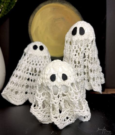 Doily Ghost Craft. Entertain your crafty little ones with this 25 pack doily set which can be cut, glued, embellished, stamped and much more to create the perfect addition to their craft work. Doilies work up quickly and don't require much yarn.
